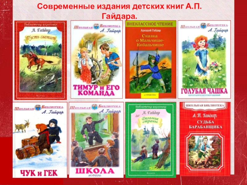 Слайд 14Современные издания детских книг А.П. Гайдара.