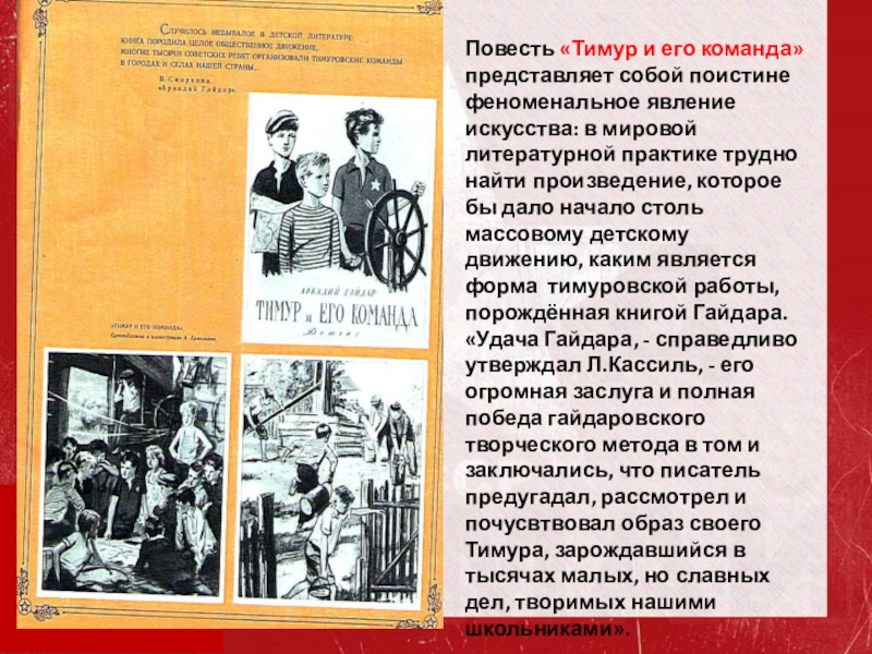 Слайд 10Повесть «Тимур и его команда» представляет собой поистине феноменальное явление искусства: