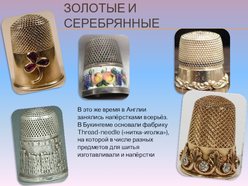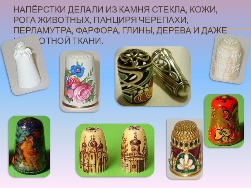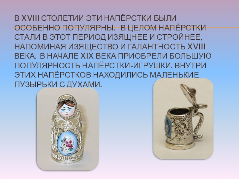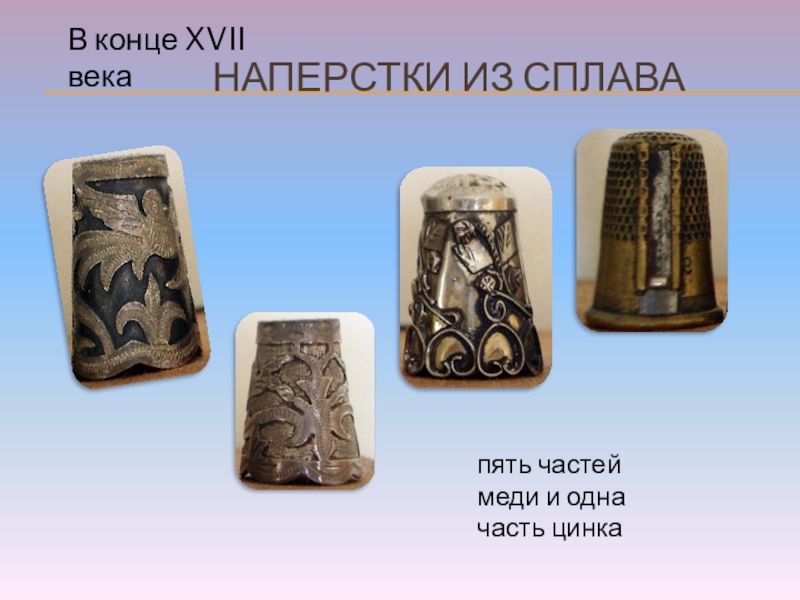C XVII века наперстки ввозили из-за границы, где их производство было механизированным, а также делали в России.
