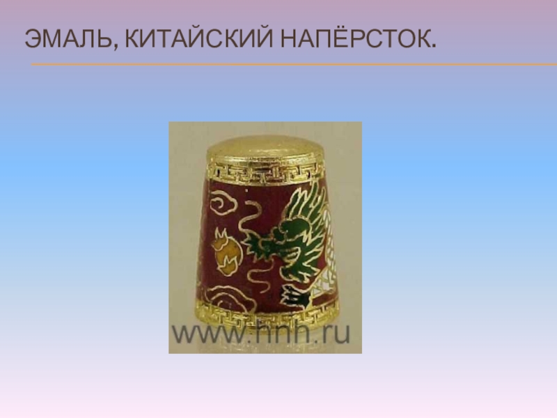 Самый ранний наперсток XIV века на территории России был найден в Новгороде. Новгород - один из древнейших городов России, впервые упоминается в Софийской 1-й летописи под 859 годом.