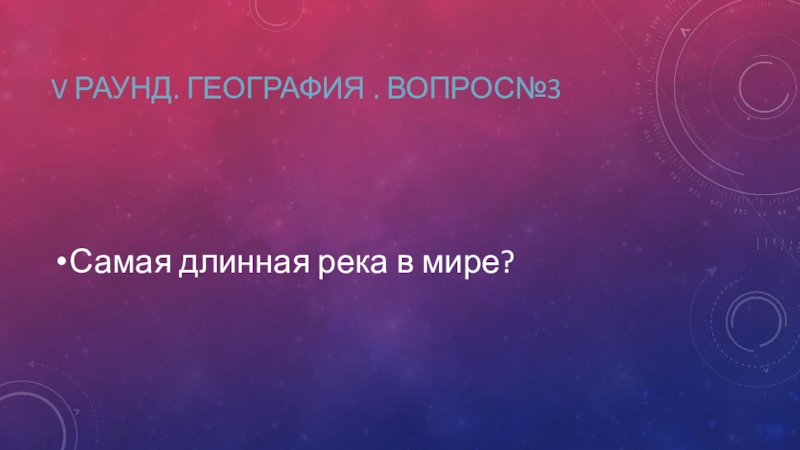V раунд. География . Вопрос№3Самая длинная река в мире?
