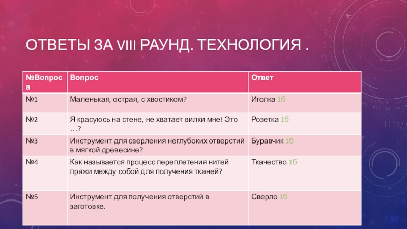 Ответы за viiI раунд. ТЕХНОЛОГИЯ .