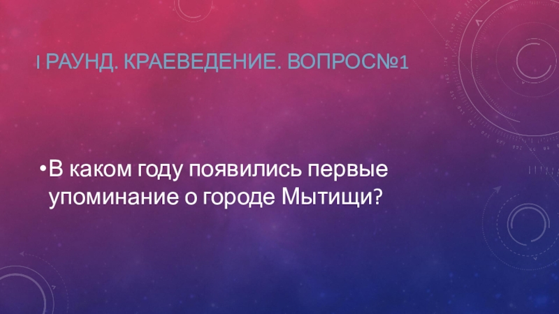 I раунд. Краеведение. Вопрос№1В каком году появились первые упоминание о городе Мытищи?