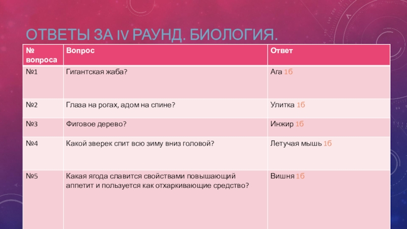 Слайд 27Iv раунд. Биология . Вопрос№3