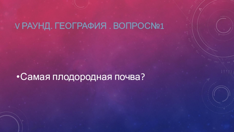 V раунд. География . Вопрос№1Самая плодородная почва?