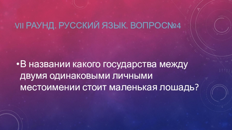 Vii раунд. Русский язык. Вопрос№4В названии какого государства между двумя одинаковыми личными местоимении стоит маленькая лошадь?
