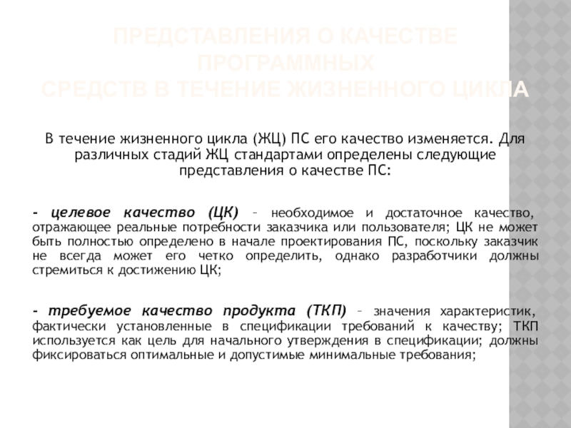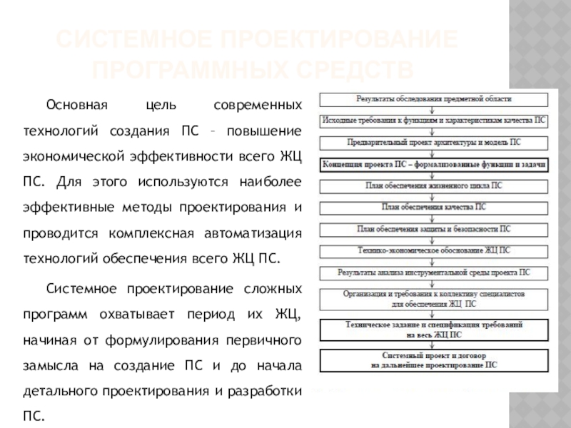 Жизненный цикл (ЖЦ) программного средства или системы – это совокупность процессов, работ и задач, включающая в себя разработку, эксплуатацию и сопровождение ПС или системы, охватывающая жизнь ПС или системы от установления требований к ним до прекращения их использования.