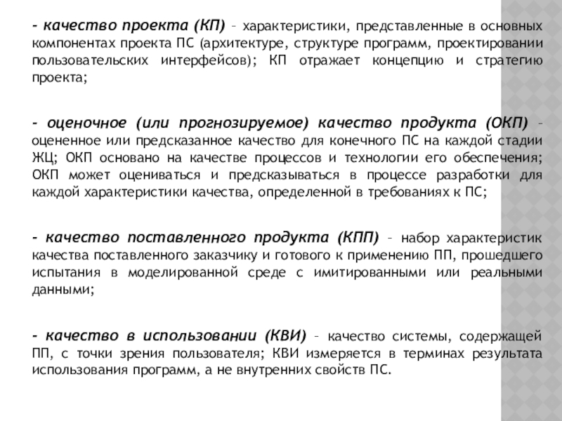 Характеристика качества ПС – набор свойств программного средства, посредством которых описывается и оценивается его качество.