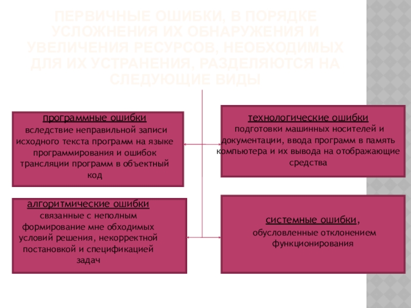 вследствие неправильной записи исходного текста программ на языке программирования и ошибок трансляции программ в объектный код