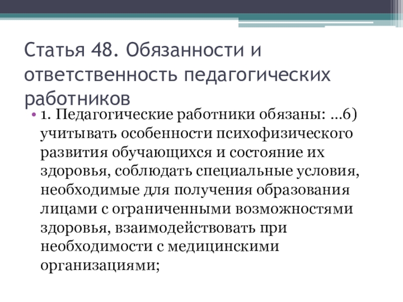 …6. В целях обеспечения реализации права на образование обучающихся с ограниченными возможностями здоровья устанавливаются федеральные государственные образовательные стандарты образования указанных лиц или включаются в федеральные государственные образовательные стандарты специальные требования.