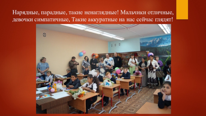 Слайд 5Нарядные, парадные, такие ненаглядные! Мальчики отличные, девочки симпатичные, Такие аккуратные на