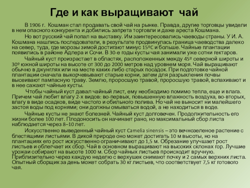 Слайд 6Где и как выращивают чай