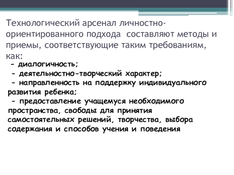 - предоставление учащемуся необходимого пространства, свободы для принятия самостоятельных решений, творчества, выбора содержания и способов учения и поведения
