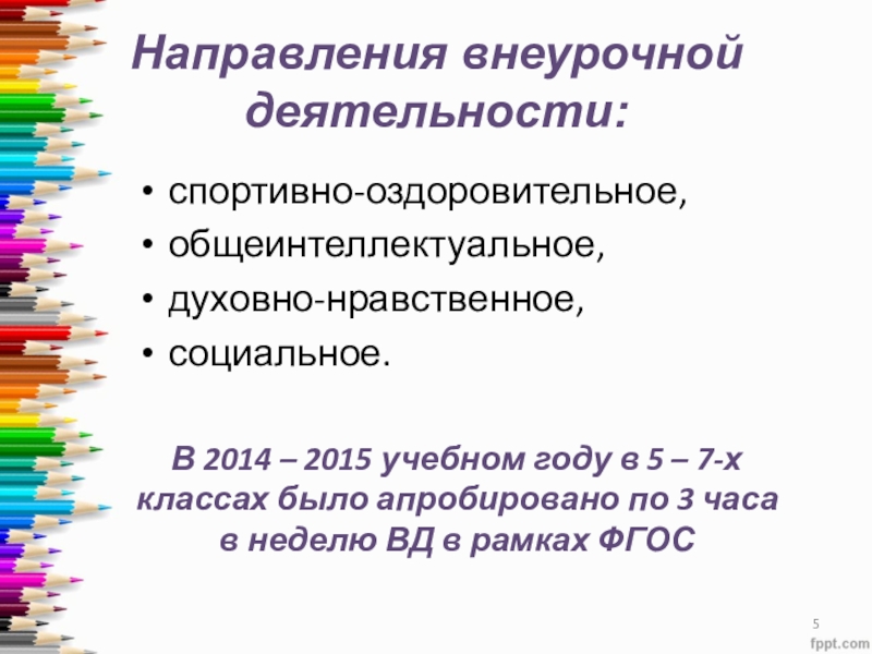 – 7-х классах было апробировано по 3 часа в неделю ВД в рамках ФГОС