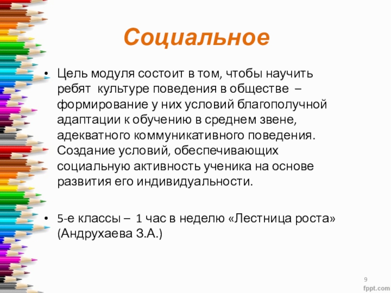 Цель модуля состоит в том, чтобы научить ребят культуре поведения в