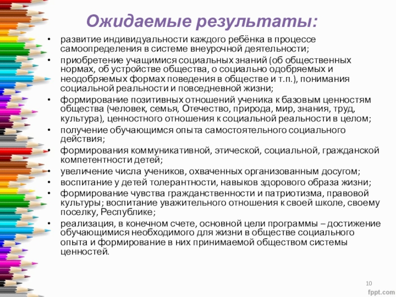 реализация, в конечном счете, основной цели программы – достижение обучающимися необходимого для жизни в обществе социального опыта и формирование в них принимаемой обществом системы ценностей.