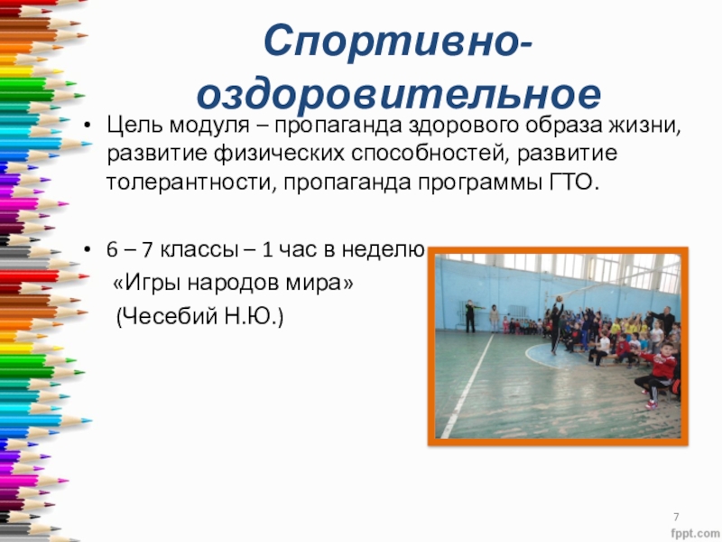 Цель модуля – пропаганда здорового образа жизни, развитие физических способностей, развитие