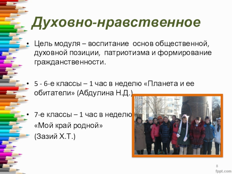 Цель модуля – воспитание основ общественной, духовной позиции, патриотизма и формирование