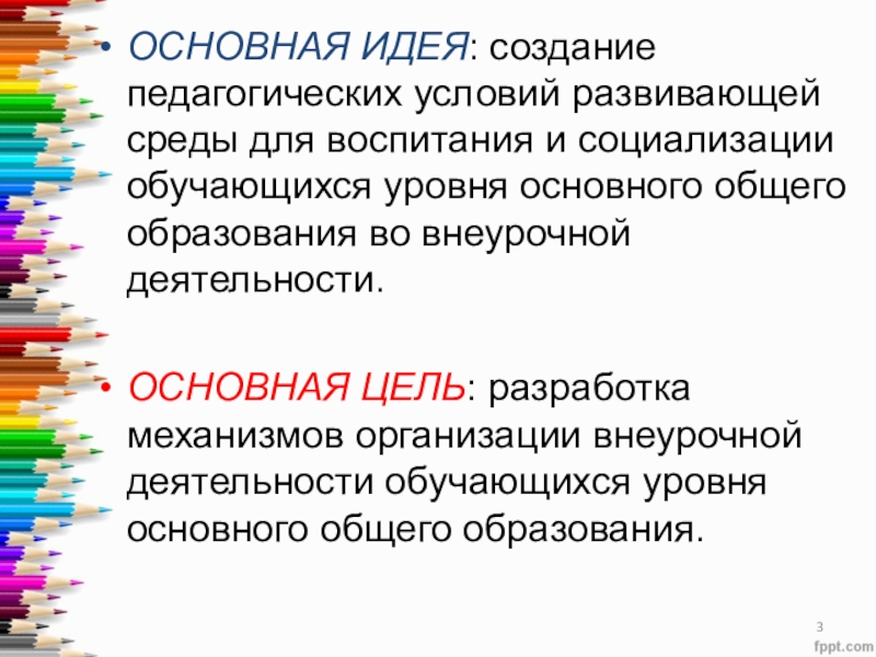 Слайд 3ОСНОВНАЯ ИДЕЯ: создание педагогических условий развивающей среды для воспитания и социализации