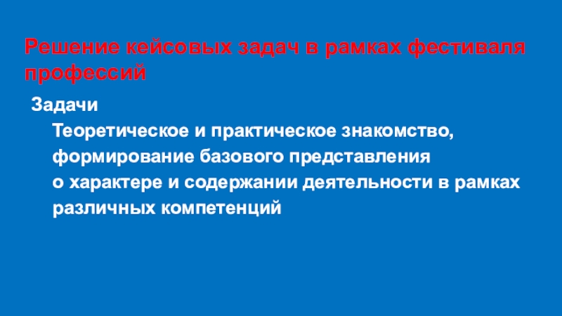 Слайд 23Решение кейсовых задач в рамках фестиваля профессий