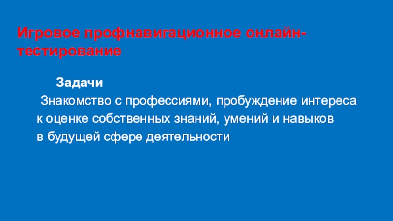 Слайд 21Игровое профнавигационное онлайн-тестирование