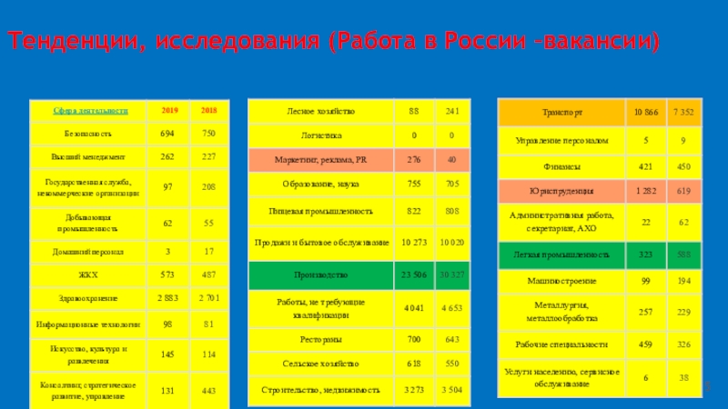 Слайд 5Тенденции, исследования (Работа в России –вакансии)