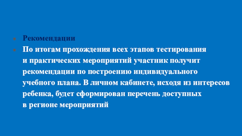индивидуального учебного плана. В личном кабинете, исходя из интересов ребенка, будет сформирован перечень доступных в регионе мероприятий