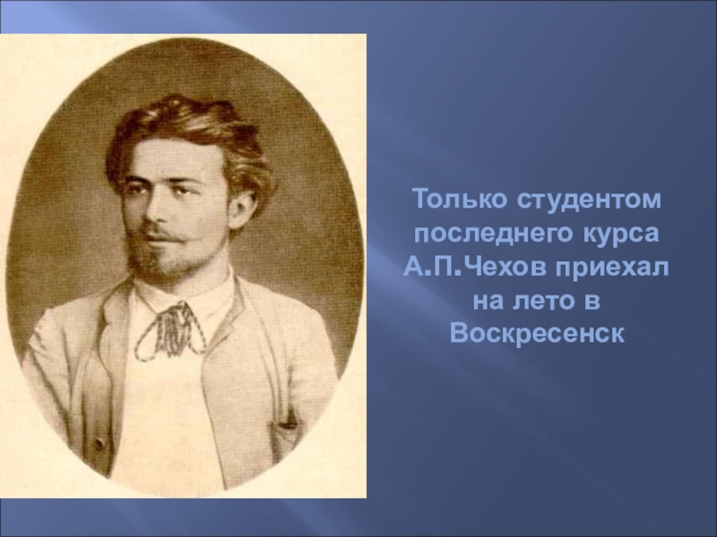 Слайд 6Только студентом последнего курса А.П.Чехов приехал на лето в Воскресенск