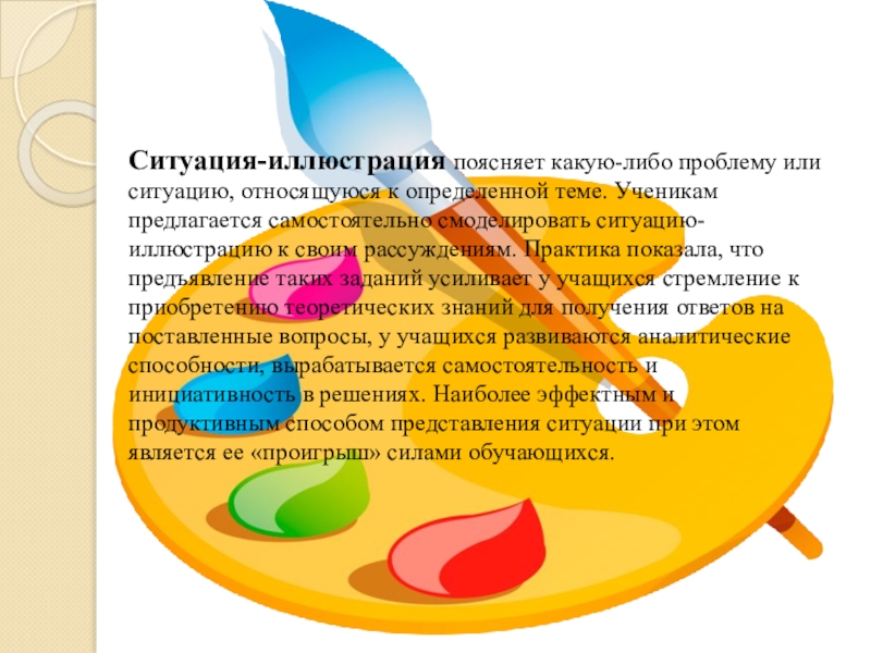Ситуация-иллюстрация поясняет какую-либо проблему или ситуацию, относящуюся к определенной теме. Ученикам