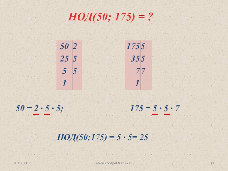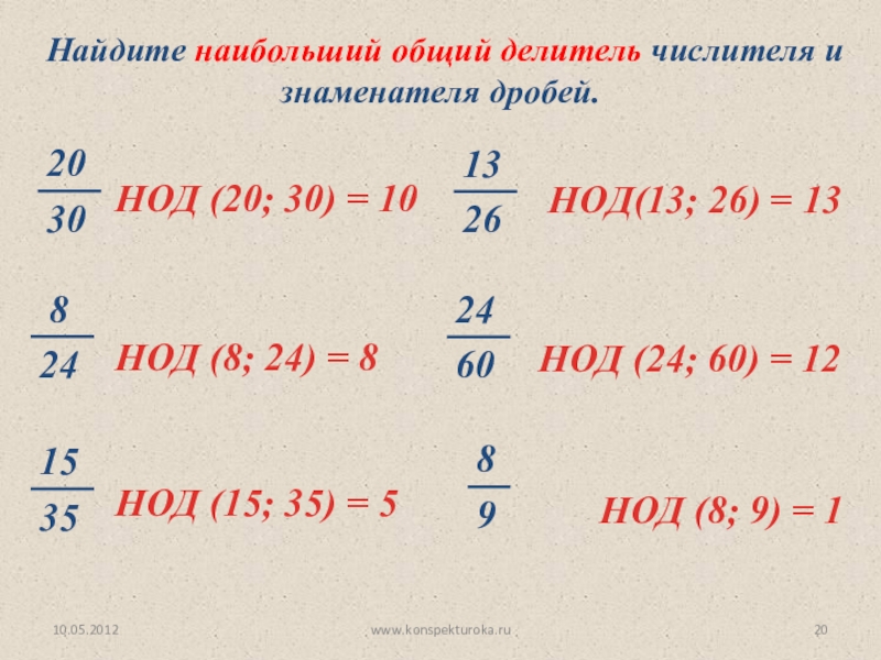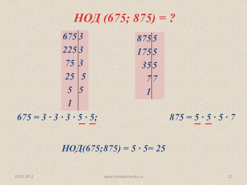НОД(24;60) = 2 ∙ 2 ∙ 3 = 12.