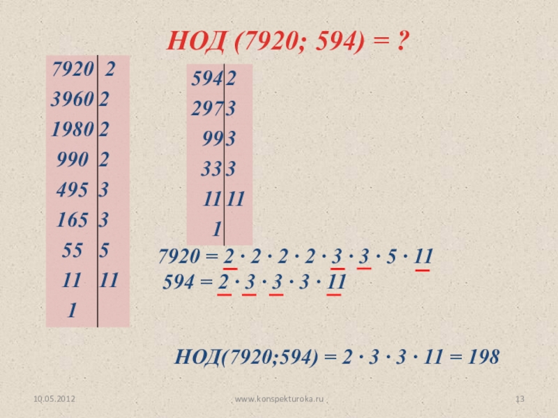 594 = 2 · 3 ∙ 3 ∙ 3 · 11