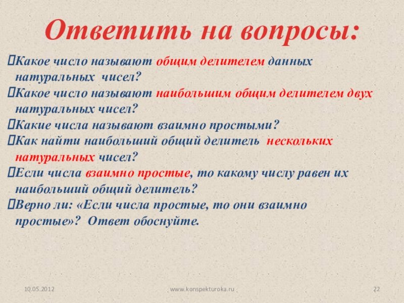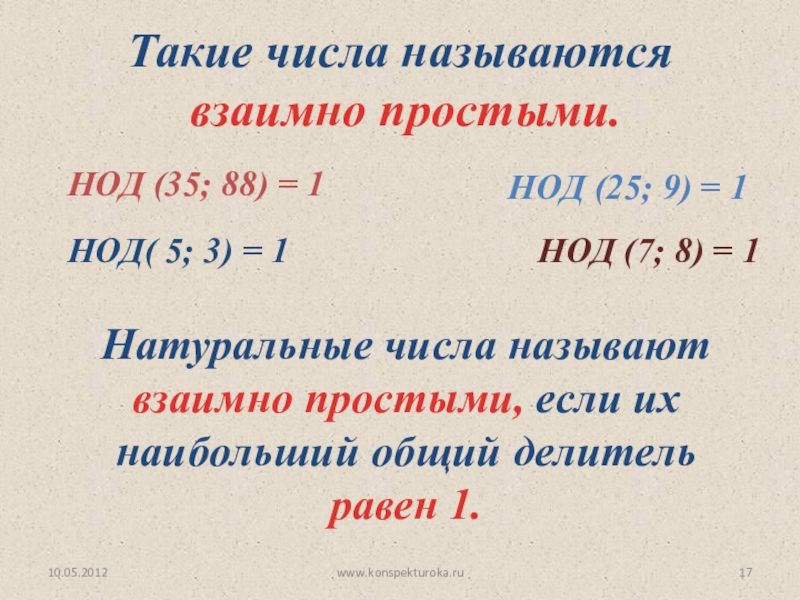 Натуральные числа называют взаимно простыми, если их наибольший общий делитель