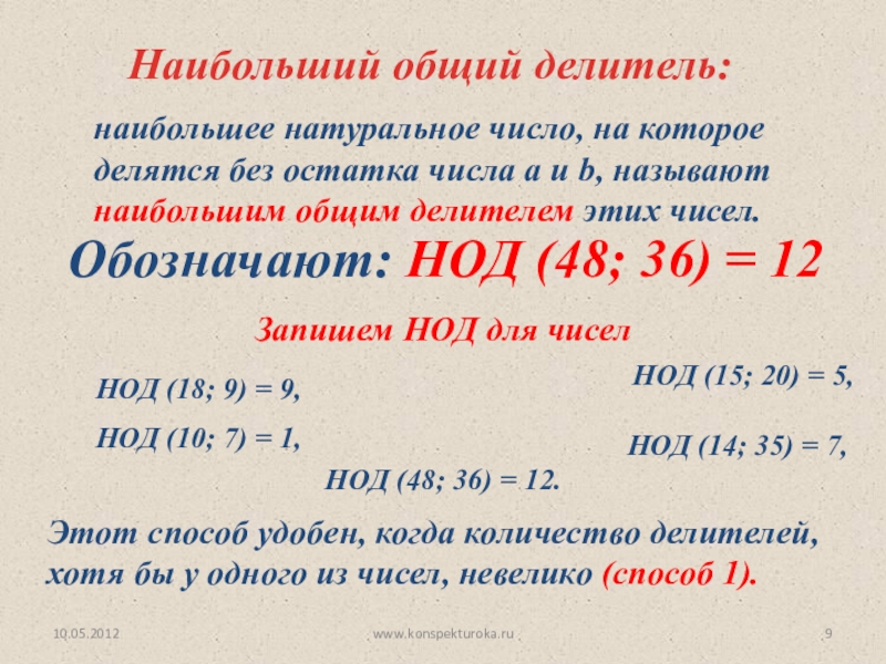 Если все данные числа делятся на одно из них, то это число и является наибольшим общим делителем данных чисел.