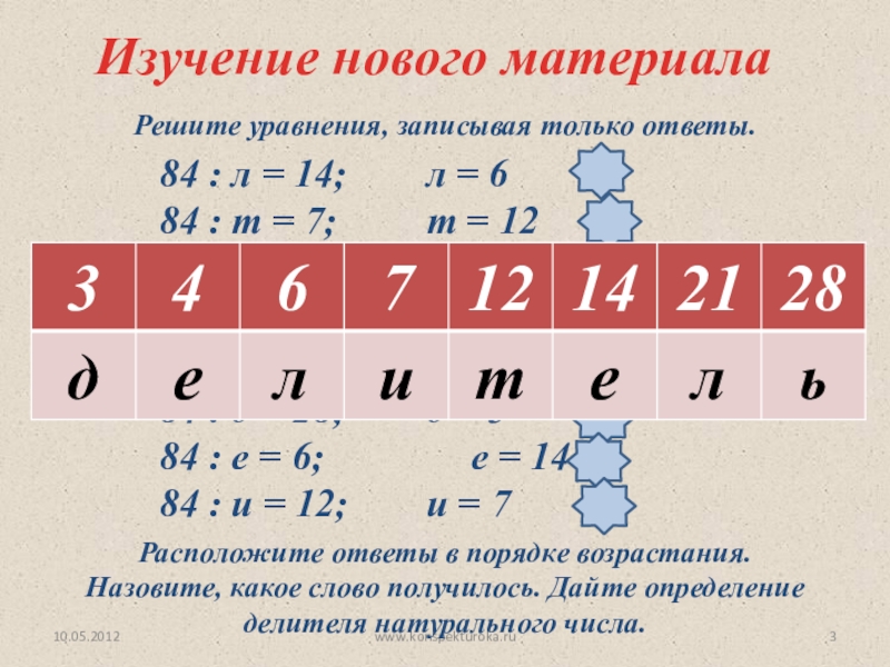 Назовите, какое слово получилось. Дайте определение делителя натурального числа.