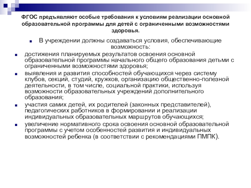 увеличение нормативного срока освоения основной образовательной программы с учетом особенностей развития и индивидуальных возможностей ребенка (в соответствии с рекомендациями ПМПК).