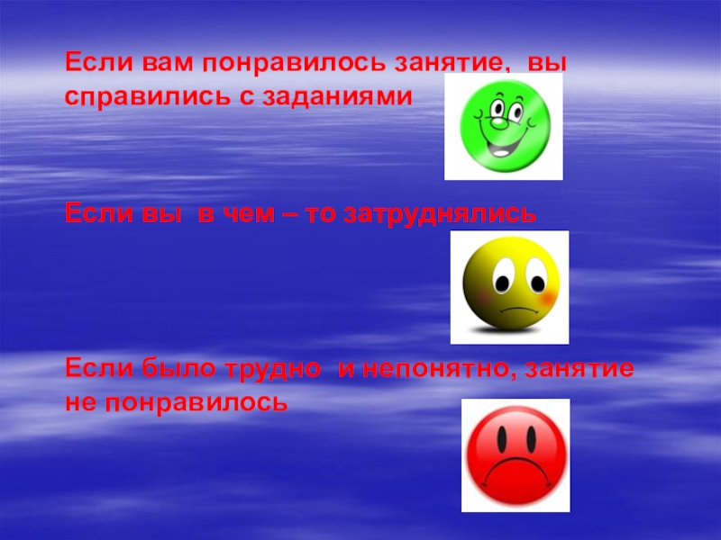 Если было трудно и непонятно, занятие не понравилосьЕсли вам понравилось занятие, вы справились с заданиями Если вы
