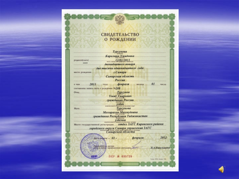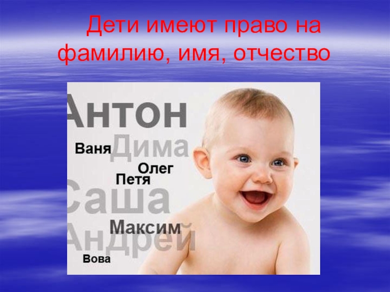 Слайд 8 Дети имеют право на фамилию, имя, отчество