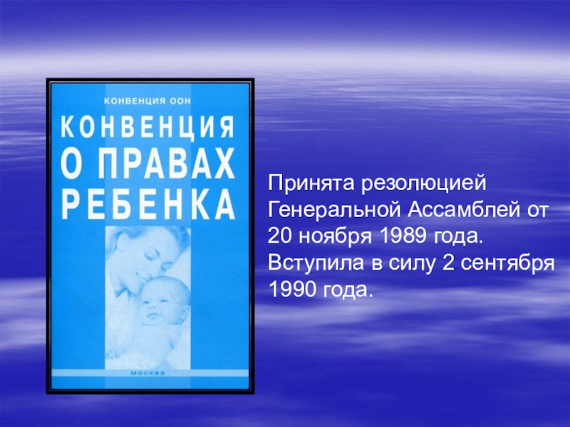 Принята резолюцией Генеральной Ассамблей от 20 ноября 1989 года. Вступила в силу 2 сентября 1990 года.