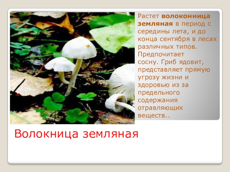 широколиственные), образует микоризу со многими лиственными деревьями, в частности, с липой и дубом. Встречается с конца июля до поздней осени. Один из самых ядовитых грибов, своего рода феномен. Ядовиты даже споры.