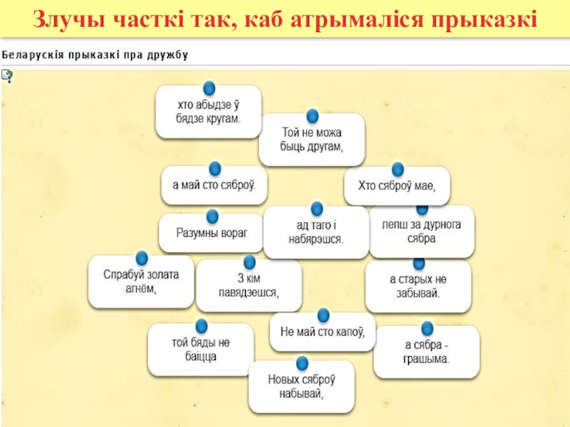 Слайд 3Злучы часткі так, каб атрымаліся прыказкі