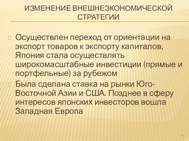 капиталов, Япония стала осуществлять широкомасштабные инвестиции (прямые и портфельные) за рубежом