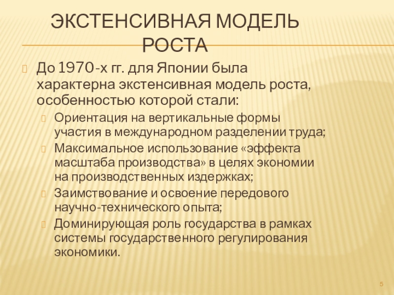 До 1970-х гг. для Японии была характерна экстенсивная модель