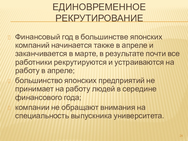 большинство японских предприятий не принимает на работу людей в середине финансового года;