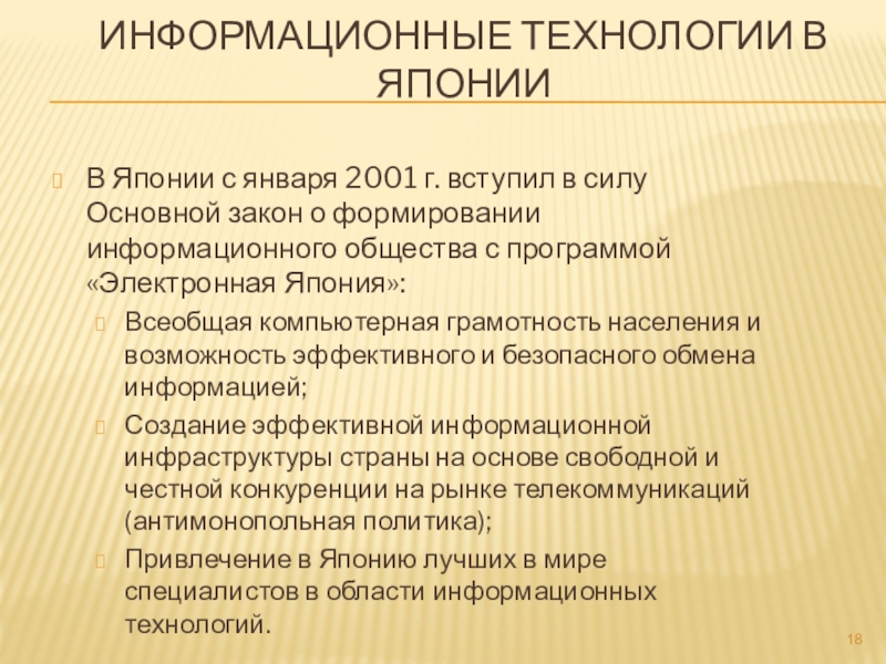 силу Основной закон о формировании информационного общества с программой «Электронная Япония»: