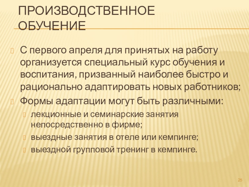 обучения и воспитания, призванный наиболее быстро и рационально адаптировать новых работников;
