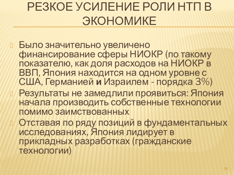 (по такому показателю, как доля расходов на НИОКР в ВВП, Япония находится на одном уровне с США, Германией и Израилем - порядка 3%)