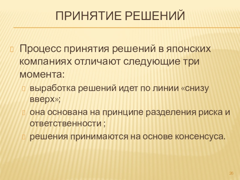 Процесс принятия решений в японских компаниях отличают следующие три момента: