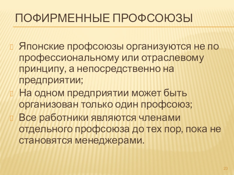 Японские профсоюзы организуются не по профессиональному или отраслевому принципу, а