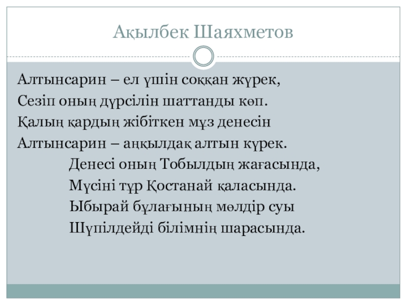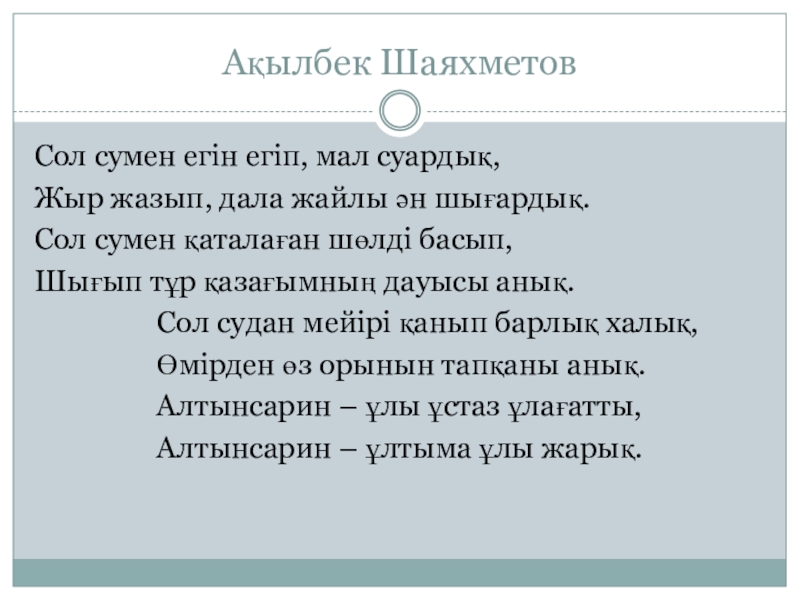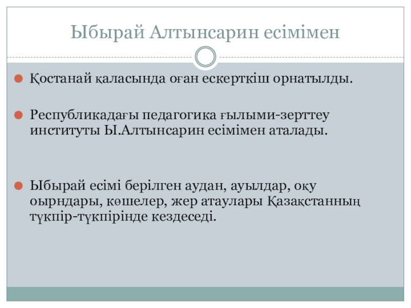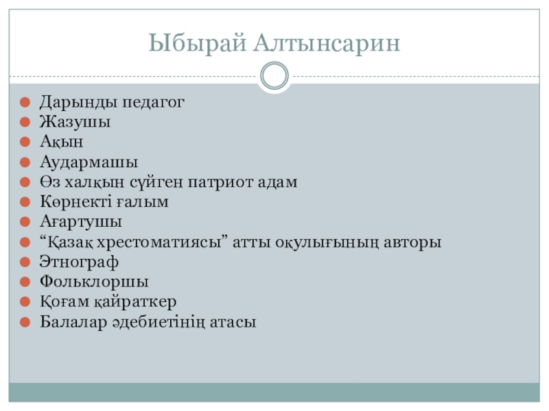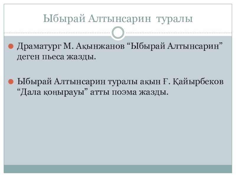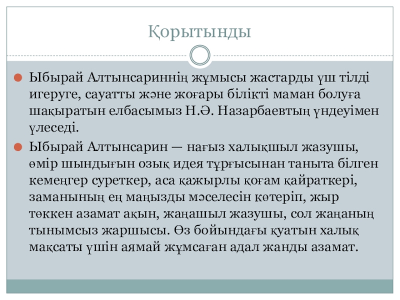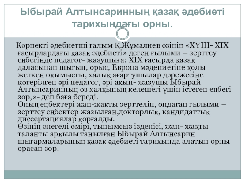 Слайд 15Ыбырай Алтынсаринның қазақ әдебиеті тарихындағы орны.