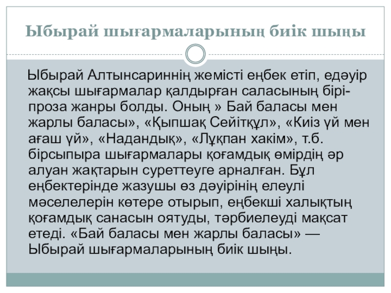 Слайд 10Ыбырай шығармаларының биік шыңы